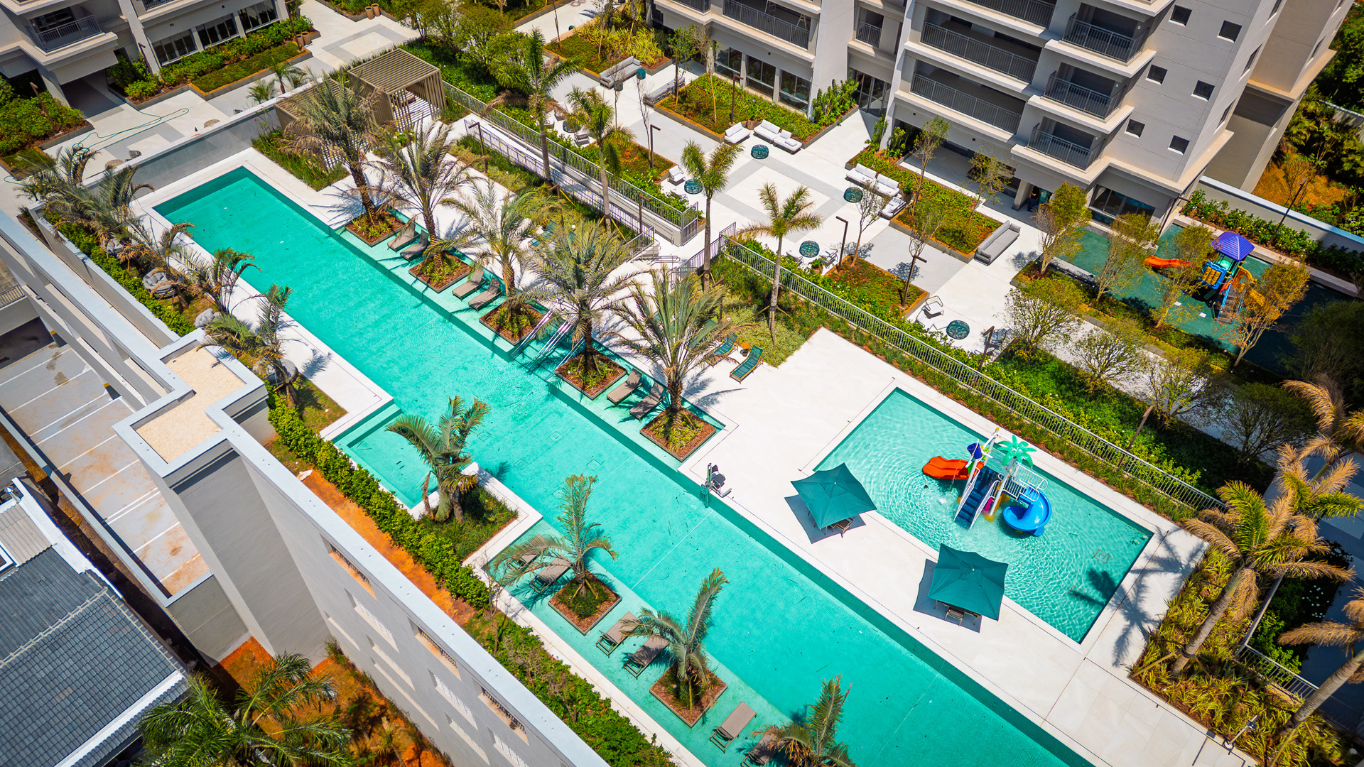 Mais do que um apartamento, você adquire um clube privado com infraestrutura de nível internacional, incluindo uma rara piscina com raia olímpica de 50 metros e quadra de Beach Tennis oficial.